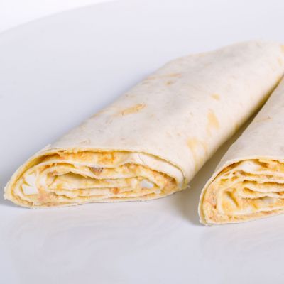 - Mix aioli, diced chicken and cheese and place on tortilla, roll the tortilla into a wrap. Place it on the tray.