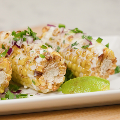 - Place cobs onto an air frying tray placed on a full sized cooking tray.