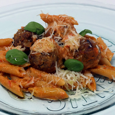 Freshly made Pork & Chorizo Meatball with Pasta