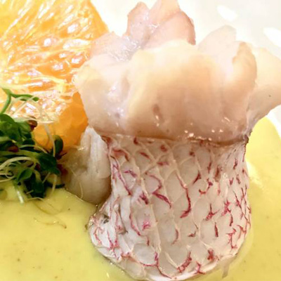 Red Snapper Roll on Coconut Cream with Coriander, Ginger and Curry