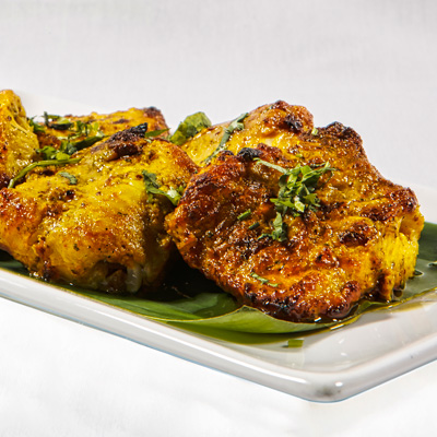 1. Cut the fish into 4 equal pieces. Mix all the remaining ingredients together and marinate the fish with the mixture. Chill the marinated fish for at least 1 hour. Place them on the tray.