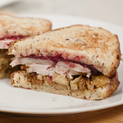 - Add cranberry sauce to the other slice of bread, top with turkey.