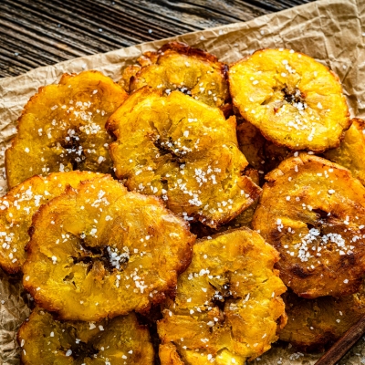 2. Once cooked, toss Tostones in melted butter, cinnamon, sugar, and salt to evenly coat and serve