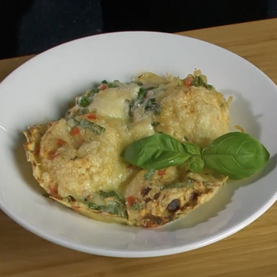 - Place them on the bowl, top with grated cheese, and cook as per the oven profile.